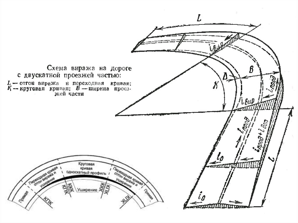 , Π³Π΄Π΅ ΡΠ°Π±ΠΎΡΠΈΠ΅ ΠΎΡΠΌΠ΅ΡΠΊΠΈ Π΄ΠΎΡΠΎΠ³ΠΈ ΠΎΡΡΠ°ΡΡΡΡ Π±Π΅Π· ΠΈΠ·ΠΌΠ΅Π½Π΅Π½ΠΈΡ, ΠΏΠΎΡΡΡΠΎΠΉΠΊΡ Π²ΠΈΡΠ°ΠΆΠ° ΠΎΡΡΡΠ΅ΡΡΠ²Π»ΡΡΡ ΠΏΡΡΠ΅ΠΌ ΡΡΠΎΠ»ΡΠ΅Π½ΠΈΡ Π΄ΠΎΡΠΎΠΆΠ½ΠΎΠΉ ΠΎΠ΄Π΅ΠΆΠ΄Ρ Π½Π° Π²Π½Π΅ΡΠ½Π΅ΠΉ ΡΡΠΎΡΠΎΠ½Π΅ ΠΏΡΠΎΠ΅Π·ΠΆΠ΅ΠΉ ΡΠ°ΡΡΠΈ Π΄Π»Ρ ΠΎΠ±ΡΠ°Π·ΠΎΠ²Π°Π½ΠΈΡ ΠΎΠ΄Π½ΠΎΡΠΊΠ°ΡΠ½ΠΎΠ³ΠΎ ΠΏΠΎΠΏΠ΅ΡΠ΅ΡΠ½ΠΎΠ³ΠΎ ΠΏΡΠΎΡΠΈΠ»Ρ Ρ Π·Π°Π΄Π°Π½Π½ΡΠΌ ΠΏΠΎΠΏΠ΅ΡΠ΅ΡΠ½ΡΠΌ ΡΠΊΠ»ΠΎΠ½ΠΎΠΌ. ΠΠ° ΠΎΡΠ½ΠΎΠ²Ρ ΠΊΠΎΠ½ΡΡΡΡΠΈΡΠΎΠ²Π°Π½ΠΈΡ Π²ΠΈΡΠ°ΠΆΠ° ΠΏΡΠΈ ΠΏΠΎΠΏΠ΅ΡΠ΅ΡΠ½ΠΎΠΌ ΡΠΊΠ»ΠΎΠ½Π΅ ΠΏΡΠΎΠ΅Π·ΠΆΠ΅ΠΉ ΡΠ°ΡΡΠΈ, ΡΠ°Π²Π½ΠΎΠΌ ΡΠΊΠ»ΠΎΠ½Ρ Π²ΠΈΡΠ°ΠΆΠ°, Π½ΡΠΆΠ½ΠΎ ΠΏΡΠΈΠ½ΠΈΠΌΠ°ΡΡ ΠΎΡΡ ΠΏΡΠΎΠ΅Π·ΠΆΠ΅ΠΉ ΡΠ°ΡΡΠΈ ΡΠ΅ΠΊΠΎΠ½ΡΡΡΡΠΈΡΠΎΠ²Π°Π½Π½ΠΎΠΉ Π΄ΠΎΡΠΎΠ³ΠΈ. ΠΠ΅ΡΠ΅Ρ ΠΎΠ΄ ΠΎΡ Π΄Π²ΡΡΠΊΠ°ΡΠ½ΠΎΠ³ΠΎ ΠΊ ΠΎΠ΄Π½ΠΎΡΠΊΠ°ΡΠ½ΠΎΠΌΡ ΠΏΠΎΠΏΠ΅ΡΠ΅ΡΠ½ΠΎΠΌΡ ΠΏΡΠΎΡΠΈΠ»Ρ ΠΎΡΡΡΠ΅ΡΡΠ²Π»ΡΠ΅ΡΡΡ ΠΏΠΎΡΡΠ΅ΠΏΠ΅Π½Π½ΡΠΌ ΠΏΠΎΠ²ΠΎΡΠΎΡΠΎΠΌ ΠΏΡΠΎΠ΅Π·ΠΆΠ΅ΠΉ ΡΠ°ΡΡΠΈ. ΠΠ°ΠΈΠ±ΠΎΠ»Π΅Π΅ ΡΠ»ΠΎΠΆΠ΅Π½ ΠΈ Π² ΡΠΎ ΠΆΠ΅ Π²ΡΠ΅ΠΌΡ ΡΠ°ΡΡ ΠΏΡΠΈ ΡΠ΅ΠΊΠΎΠ½ΡΡΡΡΠΊΡΠΈΠΈ Π΄ΠΎΡΠΎΠ³ ΡΠ»ΡΡΠ°ΠΉ ΡΠ°Π·Π±ΠΈΠ²ΠΊΠΈ Π²ΠΈΡΠ°ΠΆΠ°, ΠΊΠΎΠ³Π΄Π° ΡΠΊΠ»ΠΎΠ½ Π²ΠΈΡΠ°ΠΆΠ° ΠΏΡΠ΅Π²ΡΡΠ°Π΅Ρ ΡΠΊΠ»ΠΎΠ½ ΠΏΡΠΎΠ΅Π·ΠΆΠ΅ΠΉ ΡΠ°ΡΡΠΈ Π΄ΠΎΡΠΎΠ³ΠΈ. ΠΡΠΎΡΠ΅ Π²ΡΠ΅Π³ΠΎ ΠΎΡΡΡΠ΅ΡΡΠ²ΠΈΡΡ ΠΏΠ΅ΡΠ΅Ρ