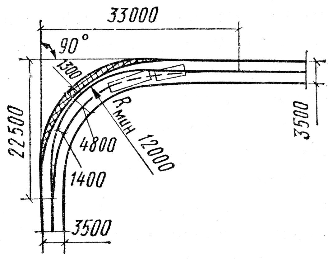 ΠΎΠ΄Π° ΠΎΡ ΠΎΠ΄Π½ΠΎΡΠΊΠ°ΡΠ½ΠΎΠ³ΠΎ ΠΏΠΎΠΏΠ΅ Π ΠΈΡ. 5. Π‘Ρ Π΅ΠΌΠ° ΠΊ ΠΎΠΏΡΠ΅Π΄Π΅Π»Π΅Π½ΠΈΡ Π½Π°ΡΠ°Π»Π° ΡΠΎΠΏΡΡΠΆΠ΅Π½Π½ΡΡ ΠΏΠ΅ΡΠ΅Ρ ΠΎΠ΄Π½ΡΡ ΠΊΡΠΈΠ²ΡΡ ΠΠ°ΠΉΠ΄Π΅Π½Π½Π°Ρ ΡΠ°ΡΡΠ΅ΡΠΎΠΌ Π²Π΅Π»ΠΈΡΠΈΠ½Π° ΡΡΠΈΡΠ΅Π½ΠΈΡ Π΄ΠΎΠ»ΠΆΠ½Π° Π±ΡΡΡ ΡΠΎΠΏΠΎΡΡΠ°Π²Π»Π΅Π½Π° Ρ Π·Π°ΠΌΠ΅ΡΠ΅Π½Π½ΠΎΠΉ ΠΏΡΠΈ ΠΈΠ·ΡΡΠΊΠ°Π½ΠΈΡΡ Π²Π΅Π»ΠΈΡΠΈΠ½ΠΎΠΉ Π·Π°Π΅Π·Π΄ΠΎΠ² ΠΊΠΎΠ»Π΅Ρ Π°Π²ΡΠΎΠΌΠΎΠ±ΠΈΠ»Π΅ΠΉ Π½Π° Π²Π½ΡΡΡΠ΅Π½Π½ΡΡ ΠΎΠ±ΠΎΡΠΈΠ½Ρ Π΄ΠΎΡΠΎΠ³ΠΈ. ΠΠ΅ΠΎΠ±Ρ ΠΎΠ΄ΠΈΠΌΠΎΠ΅ ΡΡΠΈΡΠ΅Π½ΠΈΠ΅ Π΄ΠΎΡΠΎΠΆΠ½ΠΎΠ³ΠΎ ΠΏΠΎΠΊΡΡΡΠΈΡ Π΄ΠΎΠ»ΠΆΠ½ΠΎ Π½Π΅ ΠΌΠ΅Π½Π΅Π΅ ΡΠ΅ΠΌ Π² 1,5β2 ΡΠ°Π·Π° ΠΏΡΠ΅Π²ΡΡΠ°ΡΡ Π²Π΅Π»ΠΈΡΠΈΠ½Ρ Π·Π°Π΅Π·Π΄ΠΎΠ². ΠΠ΅Π»ΠΈΡΠΈΠ½Ρ Π½Π°Π·Π½Π°ΡΠ°Π΅ΠΌΡΡ ΡΠ°Π΄ΠΈΡΡΠΎΠ² ΠΊΡΠΈΠ²ΡΡ ΠΏΡΠΈ ΡΠ΅ΠΊΠΎΠ½ΡΡΡΡΠΊΡΠΈΠΈ Π΄ΠΎΡΠΎΠ³ΠΈ Π΄ΠΎΠ»ΠΆΠ½Ρ ΡΠ²ΡΠ·ΡΠ²Π°ΡΡΡΡ ΡΠΎ ΡΠΊΠΎΡΠΎΡΡΡΡ Π΄Π²ΠΈΠΆΠ΅Π½ΠΈΡ Π°Π²ΡΠΎΠΌΠΎΠ±ΠΈΠ»Π΅ΠΉ Π½Π° ΡΠΌΠ΅ΠΆΠ½ΡΡ ΡΡΠ°ΡΡΠΊΠ°Ρ Π΄ΠΎΡΠΎΠ³ΠΈ ΠΈΡΡ ΠΎΠ΄Ρ ΠΈΠ· ΠΈΠ·Π»ΠΎΠΆΠ΅Π½Π½ΠΎΠ³ΠΎ Π²ΡΡΠ΅ ΠΏΡΠΈΠ½ΡΠΈΠΏΠ° Π²ΡΡΠ°Π²Π½ΠΈΠ²Π°Π½ΠΈΡ ΡΠΏΡΡΡ ΡΠΊΠΎΡΠΎΡΡΠ΅ΠΉ Π΄Π²ΠΈΠΆΠ΅Π½ΠΈΡ. ΠΡΠ»ΠΈ Π·Π°ΡΡΡΠ΄Π½ΠΈΡΠ΅Π»ΡΠ½ΠΎ ΠΏΠ΅ΡΠ΅ΡΡΡΠΎΠΈΡΡ Π²ΡΠ΅ ΡΠ°ΡΠΏΠΎΠ»ΠΎΠΆΠ΅Π½Π½ΡΠ΅ ΠΏΠΎΠ±Π»ΠΈΠ·ΠΎΡΡΠΈ Π΄ΡΡΠ³ ΠΎΡ Π΄ΡΡΠ³Π° ΠΊΡΠΈΠ²ΡΠ΅ ΠΏΠΎΠ΄ ΠΎΠ΄ΠΈΠ½Π°ΠΊΠΎΠ²ΡΡ ΡΠΊΠΎΡΠΎΡΡΡ Π΄Π²ΠΈΠΆΠ΅Π½ΠΈΡ, Π½Π΅ΠΎΠ±Ρ ΠΎΠ΄ΠΈΠΌΠΎ Π·Π°ΠΊΠΎΠ½ΠΎΠΌΠ΅ΡΠ½ΠΎ ΠΈΠ·ΠΌΠ΅Π½ΡΡΡ ΡΠ°ΡΡΠ΅ΡΠ½ΡΡ ΡΠΊΠΎΡΠΎΡΡΡ Π½Π° ΡΠΌΠ΅ΠΆΠ½ΡΡ ΠΊΡΠΈΠ²ΡΡ , ΡΡΠΎΠ±Ρ ΠΊΠΎΡΡΡΠΈΡΠΈΠ΅Π½Ρ Π±Π΅Π·ΠΎΠΏΠ°ΡΠ½ΠΎΡΡΠΈ ΡΠΎΡΡΠ°Π²Π»ΡΠ» 0,8β0,9. ΠΡΠΈ ΡΠ°Π·ΡΠ°Π±ΠΎΡΠΊΠ΅ ΠΏΡΠΎΠ΅ΠΊΡΠ° ΡΠ΅ΠΊΠΎΠ½ΡΡΡΡΠΊΡΠΈΠΈ ΠΊΡΠΈΠ²ΡΡ