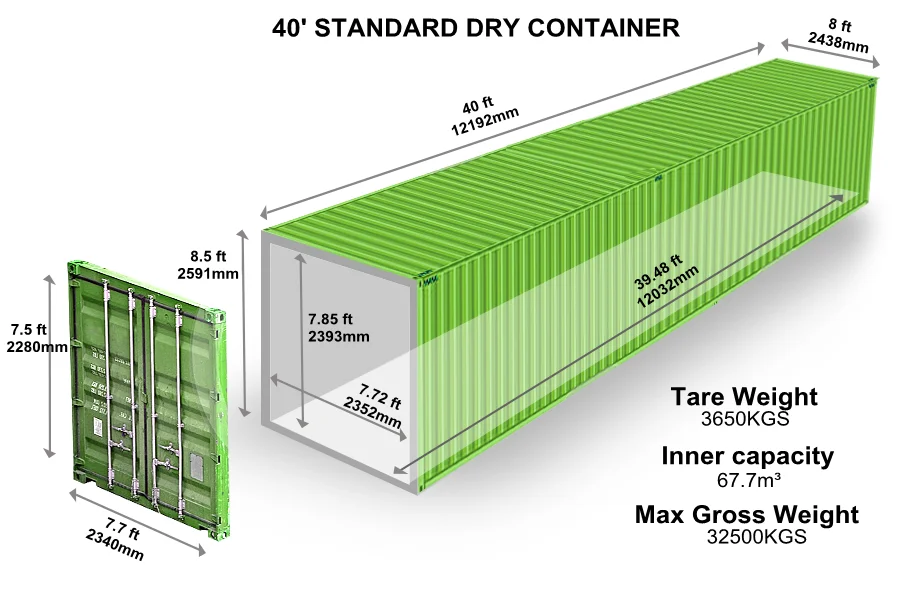 Габаритные размеры 40-футового контейнера