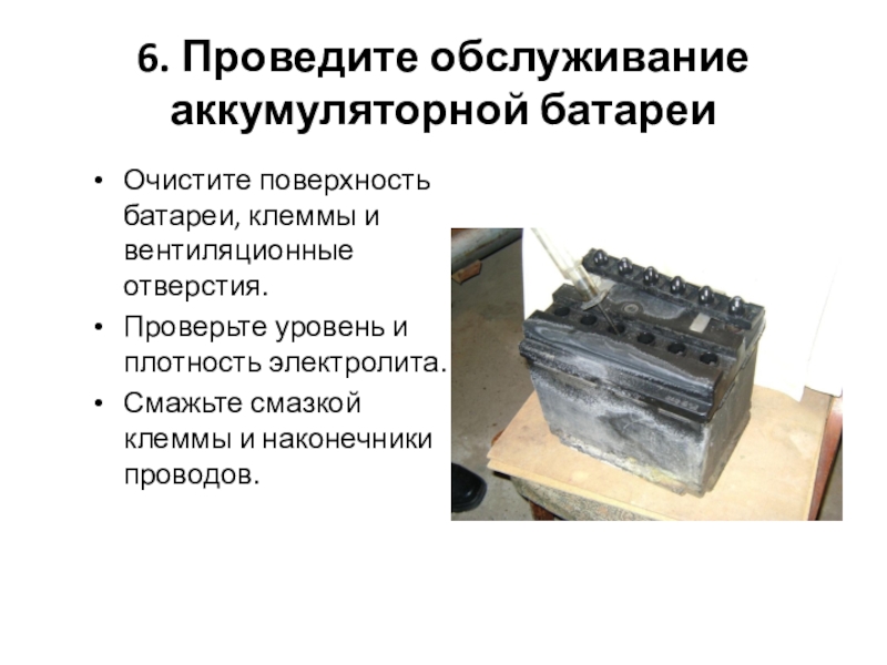 - Очистка поверхности аккумулятора и клемм