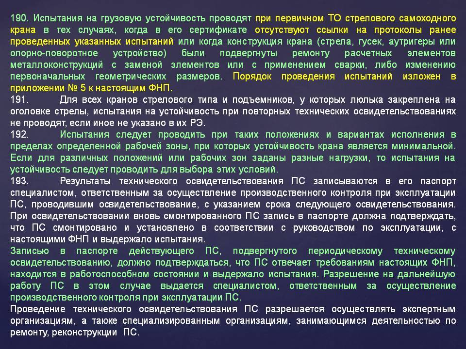 В результате проведения процедуры нашими специалистами в обязательном порядке делается запись в паспорт кранового оборудования. Такая запись говорит о том, что грузоподъемная техника отвечает требованиям федеральных норм и правил, то есть кран полностью исправен и готов к последующей эксплуатации.