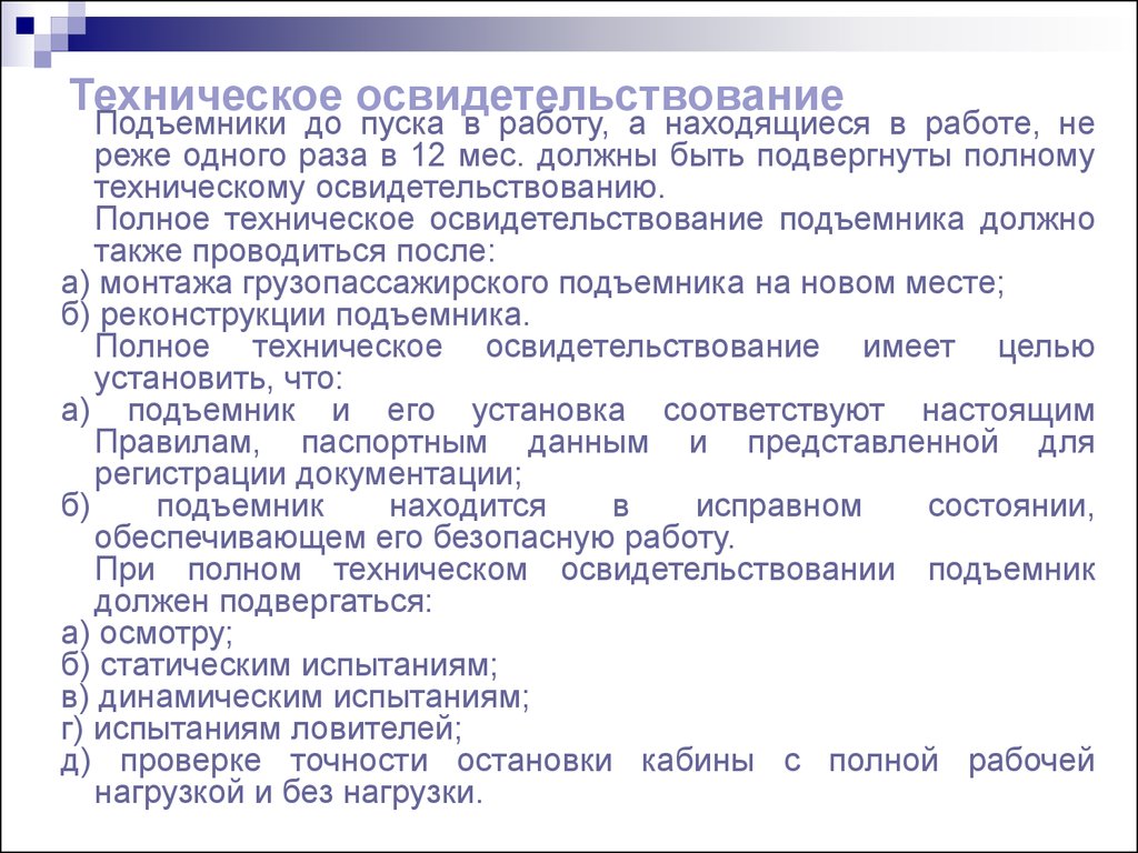 В течение всего срока эксплуатации краны должны проходить периодическое техническое освидетельствование, которое бывает: