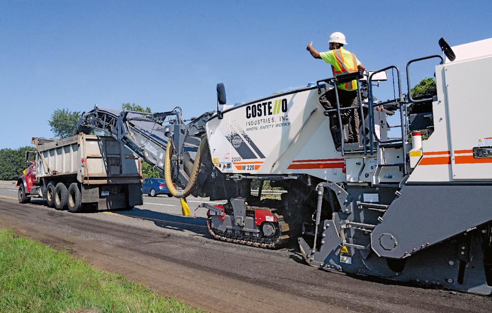 верхний слой срезается с существующего дорожного покрытия, чтобы обеспечить относительно гладкую поверхность.