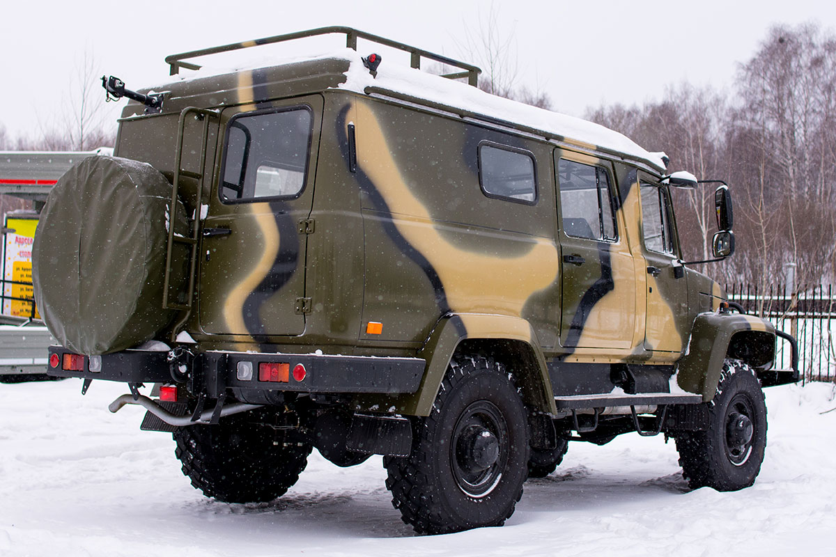 ГАЗ-33081 ЕГЕРЬ (Садко) – высокопроходимый автомобиль с двумя ведущими мостами (колесная формула 4х4), безопасный, надежный, адаптированный для сурового климата. Шасси ГАЗ Егерь и Садко, под номером 33081, практически одинаковы. У Егеря шасси более длинное за счет сдвоенной кабины. По грузоподъемности Егерь проигрывает Садко на 500 кг.