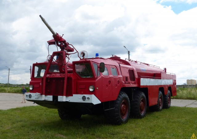 Самая популярная модель аэродромных пожарных автомобилей на базе КАМАЗ. Предназначена для тушения возгораний на воздушных судах и наземных коммуникаций аэропортов. Кузов выполнен по модульной системе и включает три отделения: цистерну, передний отсек для ПТВ и отсек для ПТВ, совмещенный с насосом. Кабина здесь цельнометаллическая, двухрядная, с усиленным подъемником.