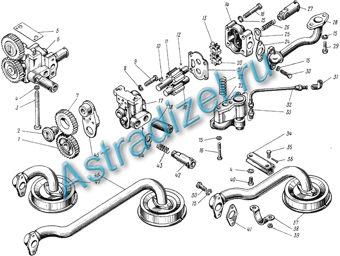 Масляный насос — шестеренчатый, двухсекционный