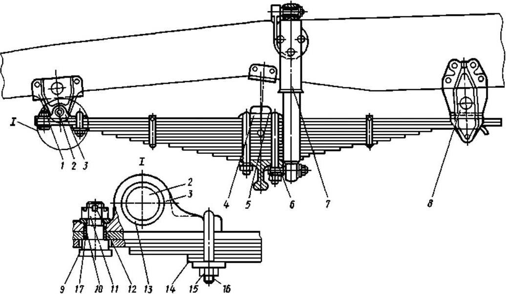 На верхней стороне картера как одно целое с ним отлиты рессорные площадки, а против этих площадок снизу сделаны специальные приливы, которые являются направляющими для стремянок задних рессор и опорой для гаек этих стремянок.