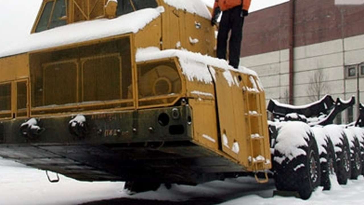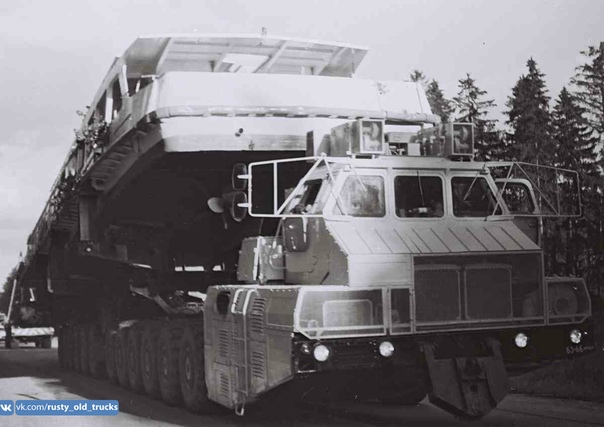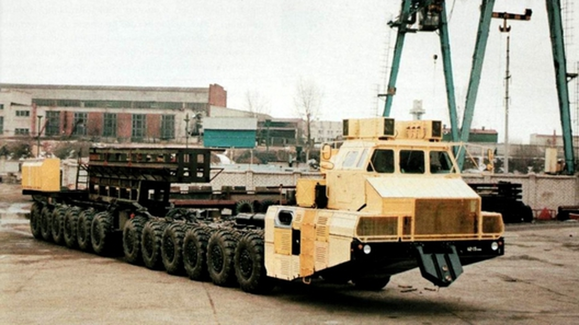 Первый опытный образец собрали на МАЗе в марте 1985 года. Задача: перевозить на большие расстояния ракету массой 104,5 тонны, длиной 22,6 м и диаметром 2,4 м.