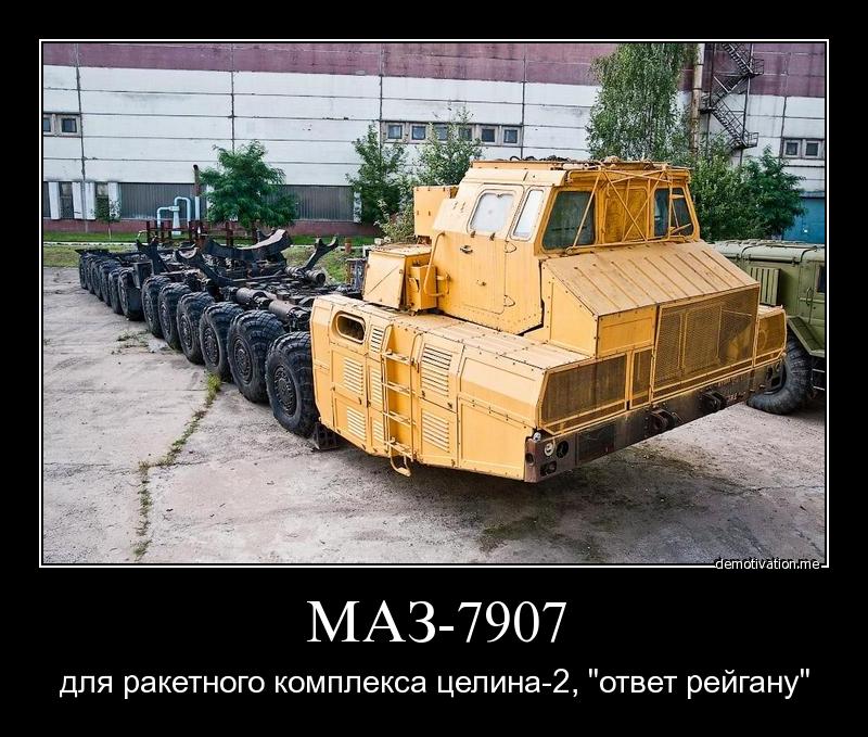 МАЗ-7907 — опытное шасси Минского автомобильного завода для пусковой установки 15П157 подвижного грунтового ракетного комплекса 15П162 «Целина-2» с МБР РТ-23 УТТХ (15Ж62). Единственная в мире машина с 24 ведущими колёсами, 16 из которых управляемые, питаемыми энергией генератора, приводимого в действие танковой газовой турбиной. Главный конструктор шасси — автоконструктор Борис Львович Шапошник, лауреат Государственной премии СССР, лауреат Ленинской премии.