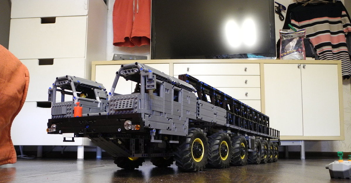 Эффектный воссозданный автомобиль МАЗ 7907 на картинке выше — работа польского строителя Патрика Валержака. Версия Патрика весом 5,3 кг и длиной почти 1,5 метра является одним из самых больших творений Technic, которые мы когда-либо видели. Внутри шасси монстра находятся 6 двигателей Power Functions и более 100 зубчатых колес.