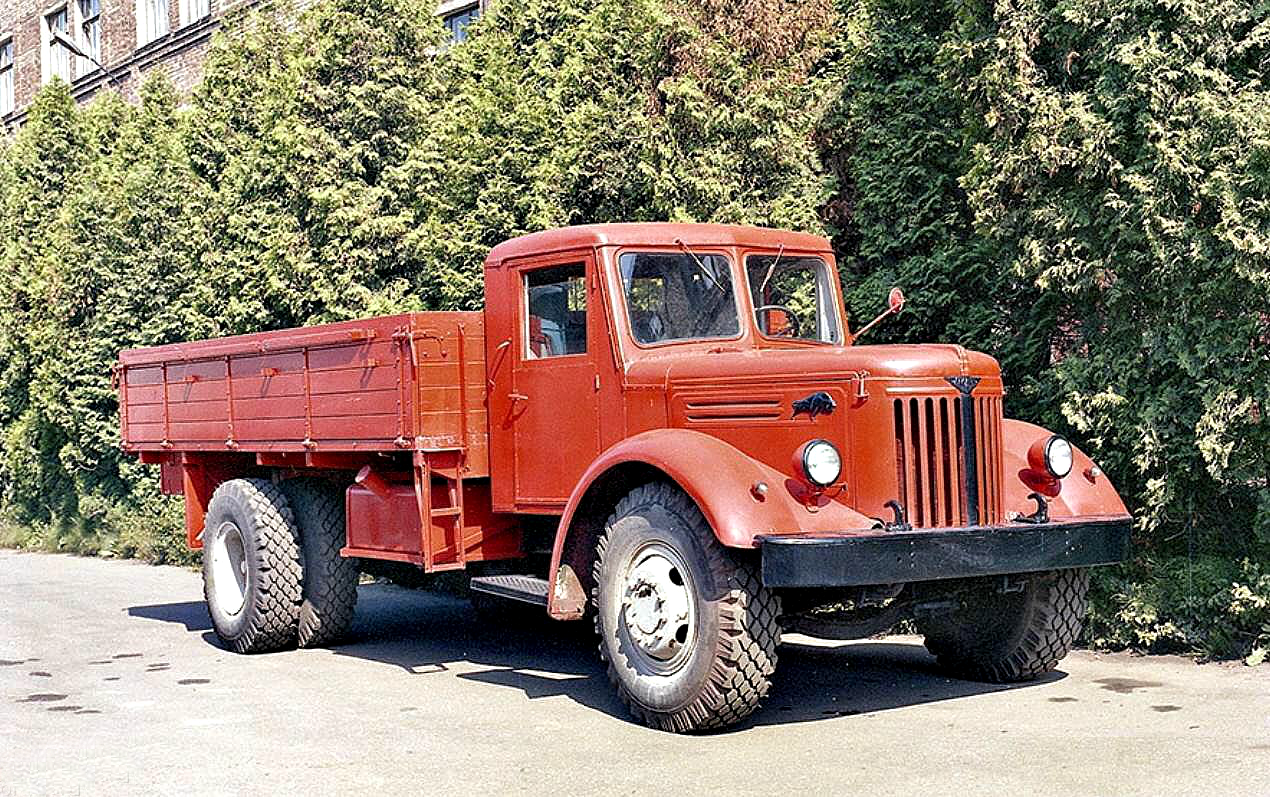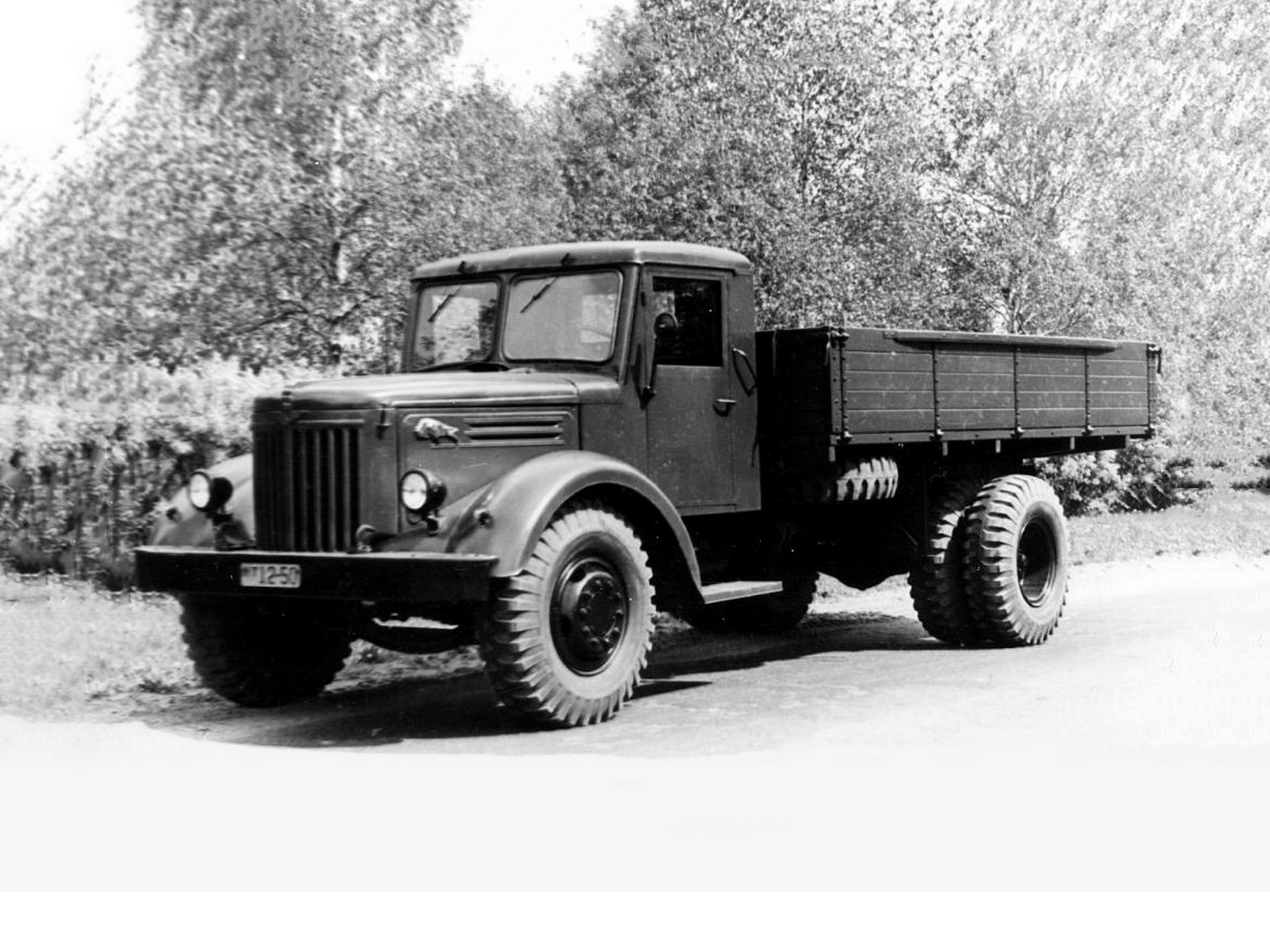 Красивый вышел «зубр», не спорю. Две фары спереди, сзади фонари, катафоты, зеркало заднего вида. Шины просто огромные, размером 10,5-20. Кабину с деревянным каркасом внутри и снаружи жестяным листом обшили, не так гнить будет. Может, пару-тройку зим теперь и кабина протянет. Кстати, в голубой цвет только экспортные машины красят, а «для своих» – в защитный, темно-зеленый. Одним словом – красавец. Правда, очень уж он на ярославский грузовик похож, всей-то разницы, что радиаторная решетка с вертикальными полосами и медведя на капоте нет.