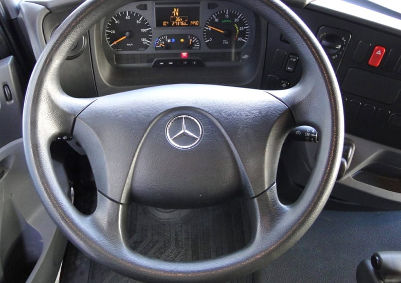 Ступенька для доступа в салон имеет небольшую высоту, что облегчает вход и выход из кабины. По обеим сторонам широкого дверного проема установлены поручни. В салоне грузовика Мерседес Атего 815 достаточно много свободного места, что позволяет водителю свободно перемещаться на пассажирское сидение. Опционально производитель предлагает установить другие варианты кресел.