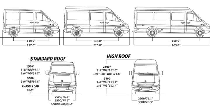Пассажирские версии Sprinter со 144-дюймовой колесной базой вмещают 12 человек с комфортом, а версии со 170-дюймовой колесной базой могут вместить 15.9 человек.0003