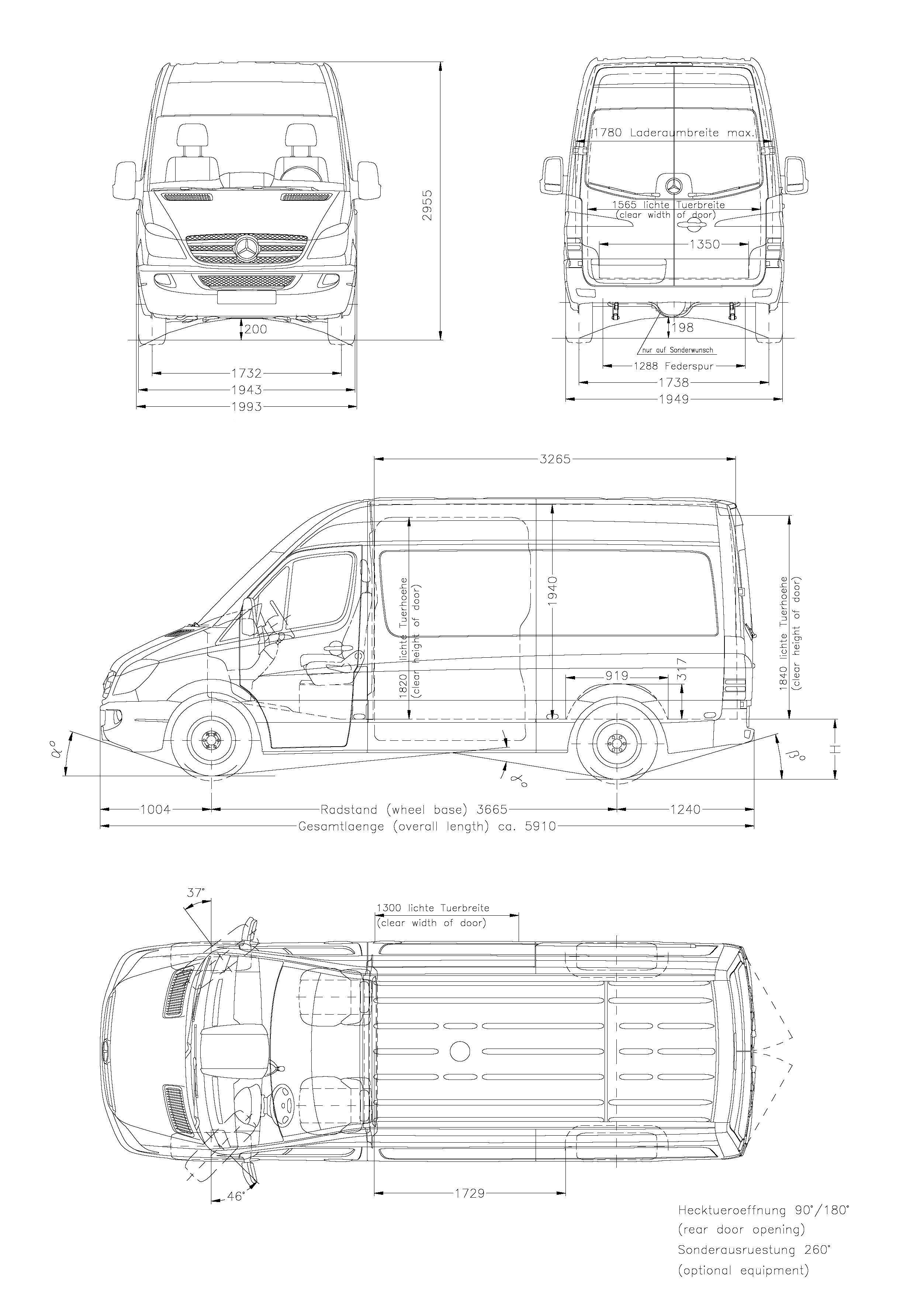 - Задние двери, открывающиеся на 270 градусов: По сравнению со стандартными задними дверями фургона Transit, открывающимися на 180 градусов, задние двери фургона Sprinter обеспечивают большую гибкость при погрузке и разгрузке.
