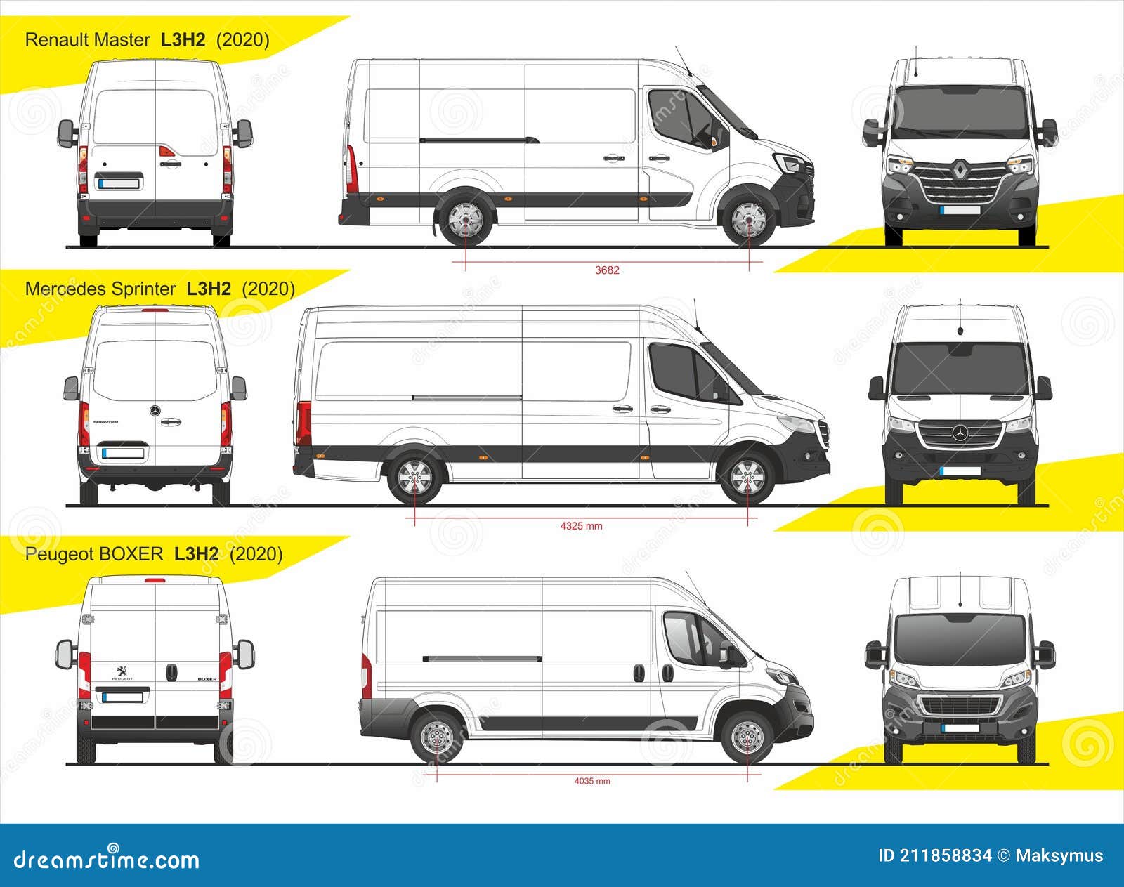 Габариты Мерседес Спринтер считаются по 3 основным кузовным параметрам, как и любые другие авто — длина, высота, ширина.