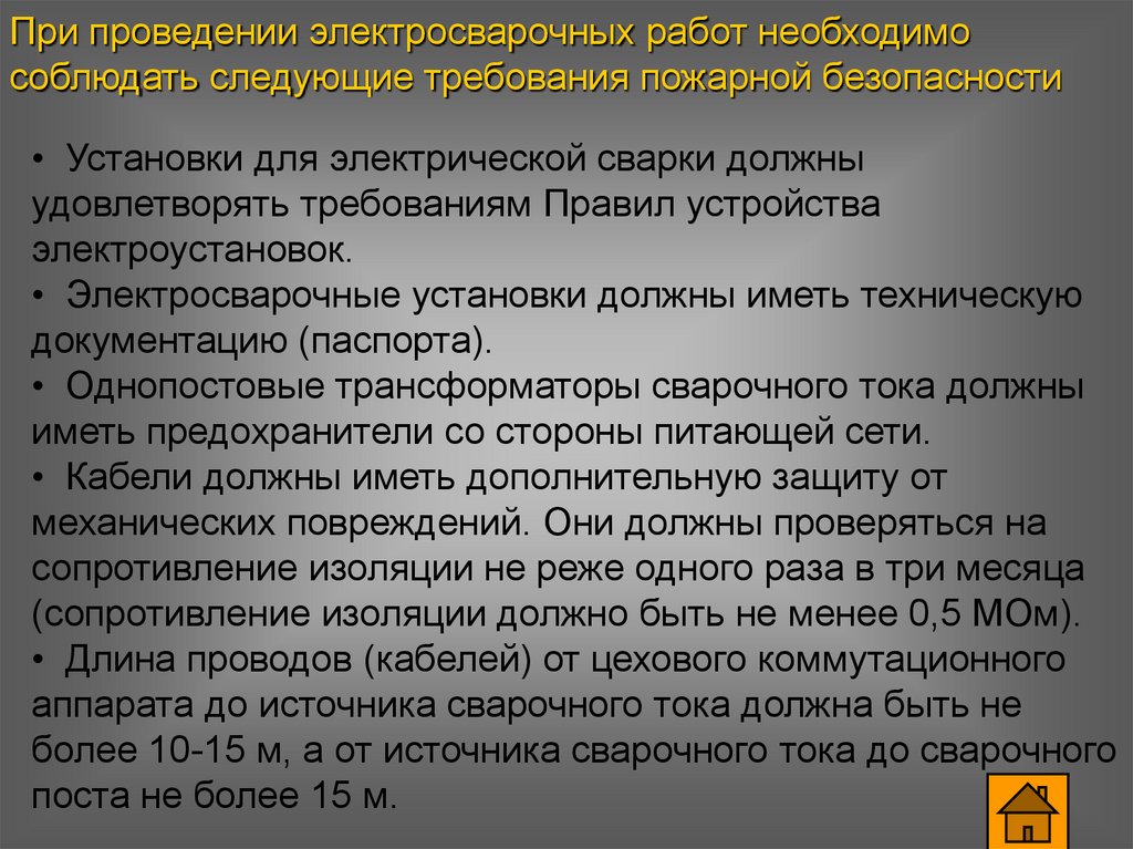 Сегодня действуют правила техники безопасности, разработанные в мае 2015 года. Их требования должны неукоснительно соблюдать все без исключения работодатели и специалисты, выполняющие сварочные работы. Как минимум, их обязаны знать все любители, имеющие в своем распоряжении сварочные аппараты.