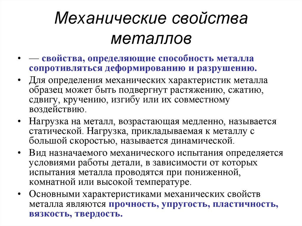 Свойствами металлов обладают около 80 элементов периодической системы Д.И. Менделеева. Для металлов, а также для металлических сплавов, особенно конструкционных, большое значение имеют механические свойства, основными из которых являются прочность, пластичность, твердость и ударная вязкость.