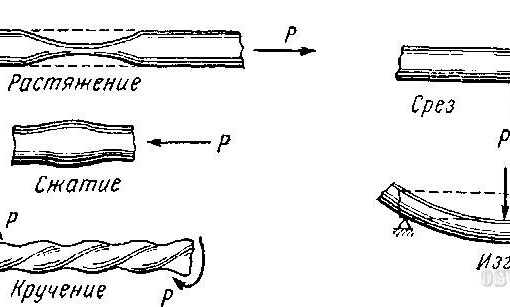Деформация – это изменение формы и размеров твердого тела под действием внешних сил или в результате физических процессов, возникающих в теле при фазовых превращениях, усадке и т.п. Деформация может быть упругая (исчезает после снятия нагрузки) и пластическая (сохраняется после снятия нагрузки).