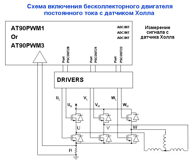 | УТА | Выход полумоста А (подключается к одной клемме двигателя постоянного тока). | |