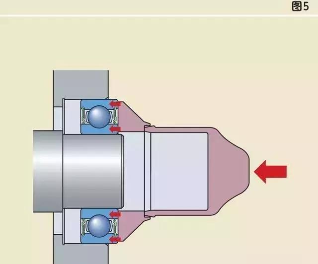 В случае не очень тугой посадки монтаж малых подшипников производится легкими ударами молотком по втулке, прижатой к торцу кольца подшипника. Во избежание перекоса удары должны равномерно распределяться по окружности кольца.