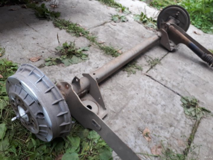 Тормозные цилиндры и колодки в рабочем состоянии. В перевёрнутом виде клиренс 34 см, отличное решение для прицепов.