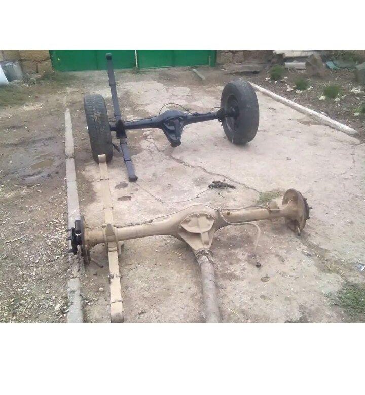 переделанный, ГП 2.8(нет здесь не напутано), фланец оси москвич 412-2140 (мост в сборе, как говориться поставил и поехал), разболтовка колес Москвич