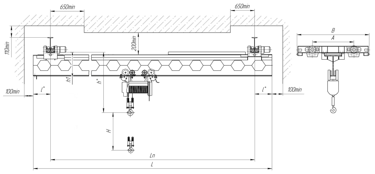 - Одна (1) электрическая канатная таль с малой высотой подъема и моторизованной тележкой