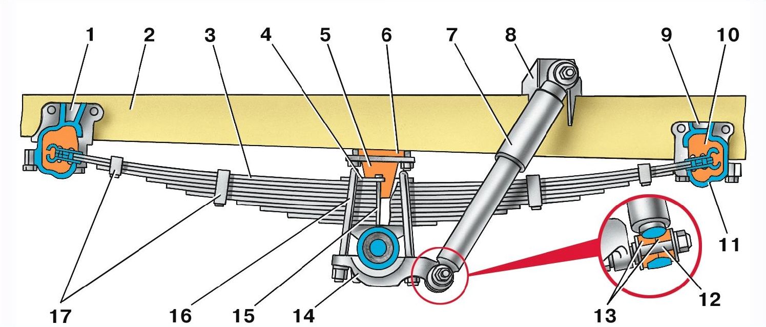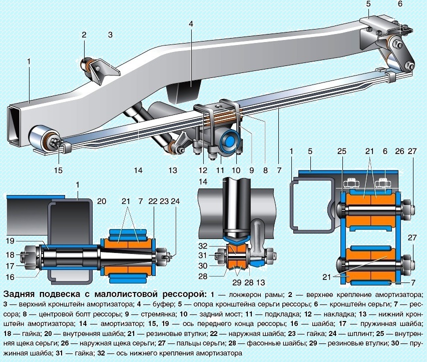 Т.к. новая рессора имеет целый ряд отличий, то давайте подумаем, как новую рессору установить на место старой и возможно ли это. Для этого предлагается сравнить способы установки рессор и необходимые для этого детали.
