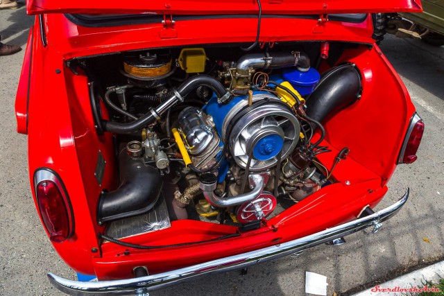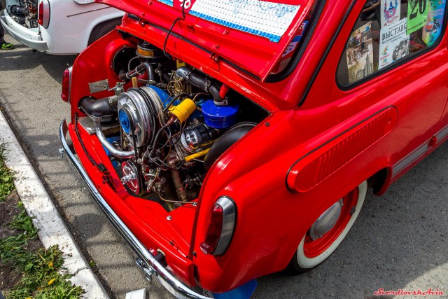 Получился ЗАЗ Запорожец. Имея, как и у «Жука», двигатель с воздушным охлаждением, установленный в задней части автомобиля и приводящий в движение задние колеса, но, в отличие от «Жука», с 4 цилиндрами, расположенными в V-образной форме, на самом деле это была довольно радикальная идея, за исключением одного, у которого было всего 23 цилиндра. Лошадиные силы.