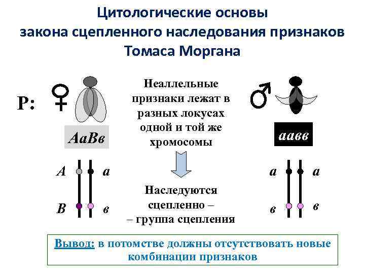 Приведем хромосомную теорию наследственности Моргана. Она пригодится при решении задач на сцепленное наследование признаков: