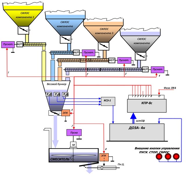 - Формирование многокомпонентных зерновых смесей в потоке на мельницах, элеваторах и комбикормовых заводах;
