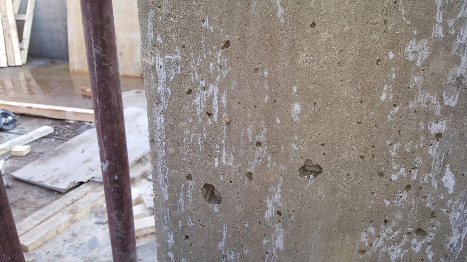 | 9. Бетонная поверхность имеет поры, раковины, обнажение арматуры | Снижение долговечности |