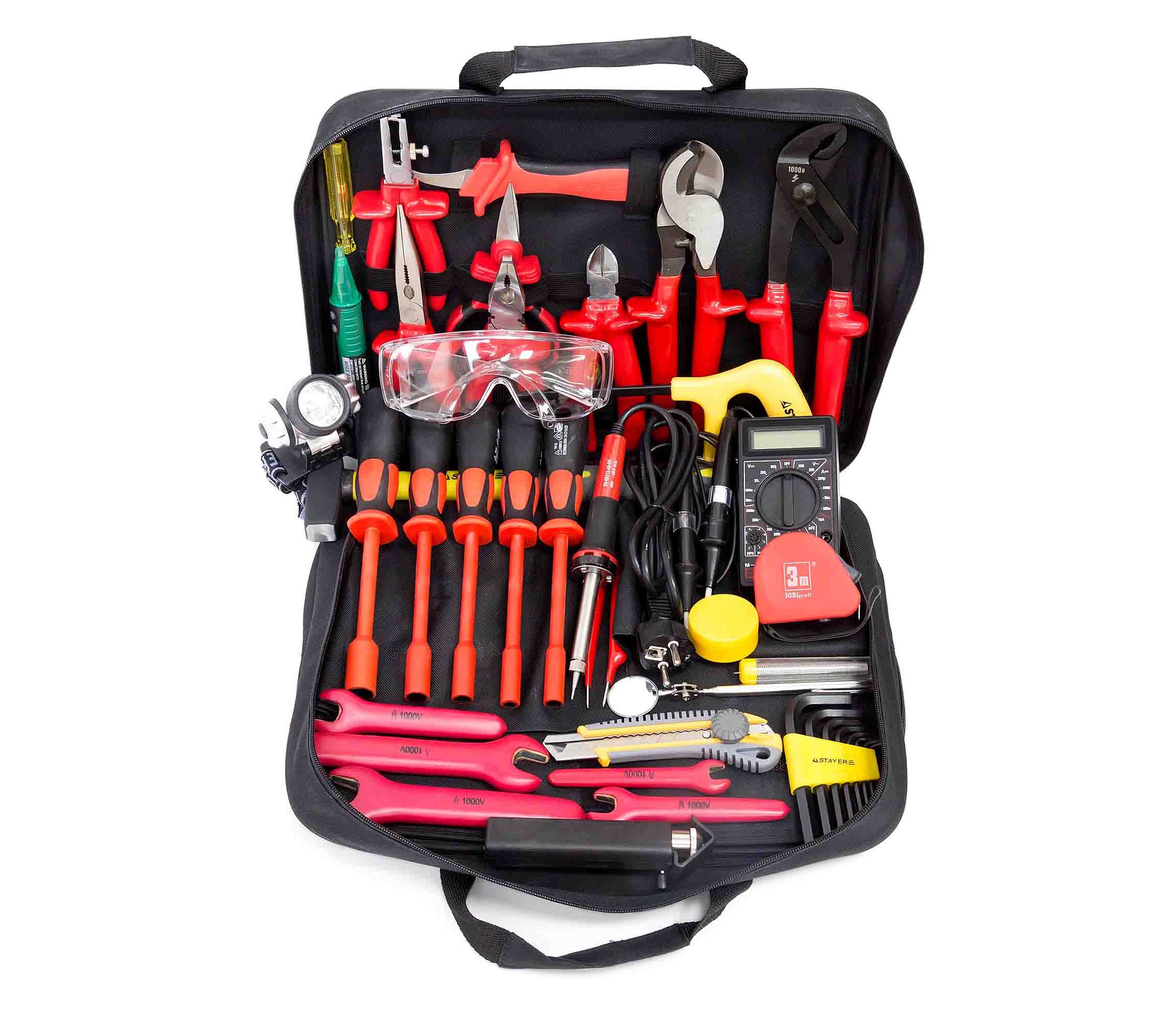 - Отвертка Phillips #1-3/16 дюйма x 3 дюйма, крестообразная отвертка #2-1/4 дюйма x 4 дюйма, корпусная отвертка с круглым хвостовиком 3/16 дюйма x 6 дюймов B, плоская отвертка, наконечник Keystone с квадратным хвостовиком 1/ Отвертка с плоским лезвием 4 дюйма x 4 дюйма, инструмент для зачистки проводов Pro Plus 10-18 AWG, длинногубцы 8 дюймов, плоскогубцы 10 дюймов, диагональные кусачки 8 дюймов и 9IN Бокорезы