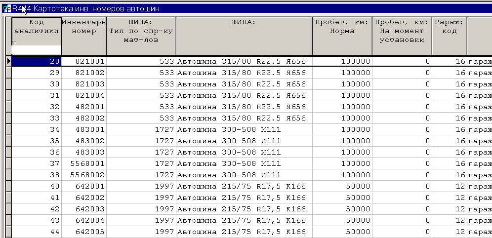 Такую же карточку заводят на складские шины, только вместо пробега ведут учет времени хранения.