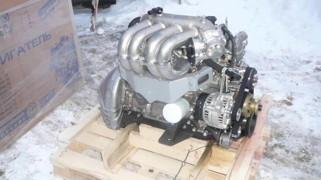 С комплексной микропроцессорной системой управления впрыском топлива и зажиганием в сборе (без коробки передач). Рабочий объем 2890 см3, степень сжатия 9,2. С кронштейном крепления насоса ГУР для автомобиля АСМП класса «А» ГАЗель–Бизнес.