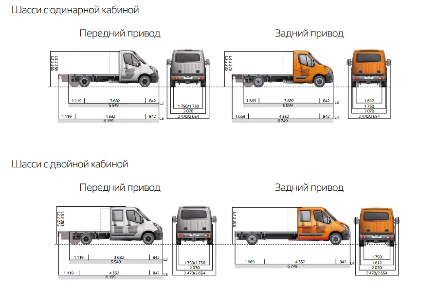 Шасси с кабиной может быть переоборудовано в самосвальный, бортовой или обычный кузов Luton в соответствии с перечнем утвержденных компаний Renault по переоборудованию.