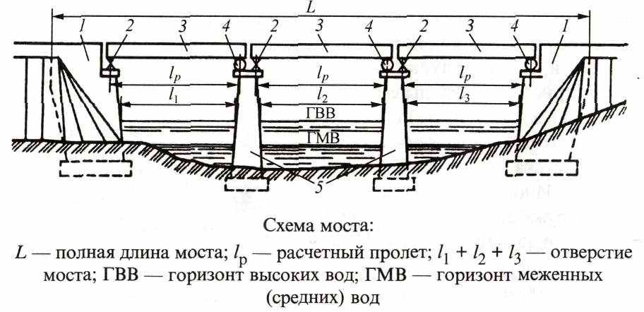 - Гидрологических условий, то есть от характера протекания воды под мостом, степени изменения горизонтов воды, скорости течения, характера действия льда, условий судоходства и сплава