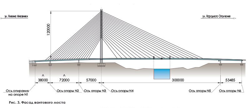 Мост состоит из двух основных частей: опор (устоев и промежуточных опор с поддерживающими их фундаментами) и пролетных строений.