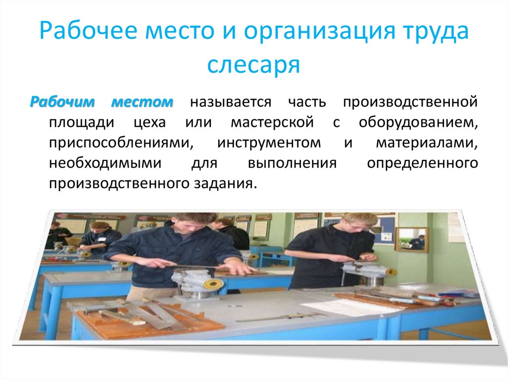 приспособлениями и слесарным инструментом для выполнения работ в слесарной