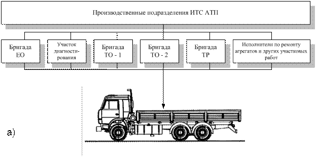 Организация работ по техническому обслуживанию автомобилей может быть бригадной или агрегатно-участковой.