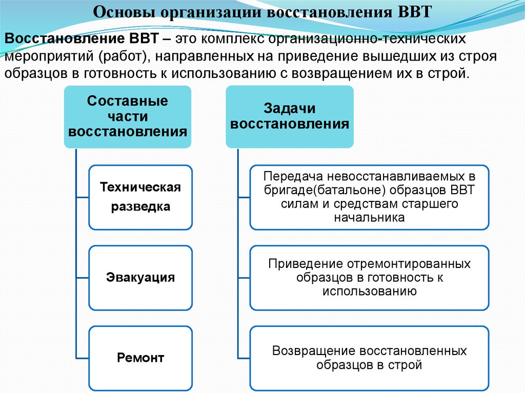 восстановления, а также различные виды