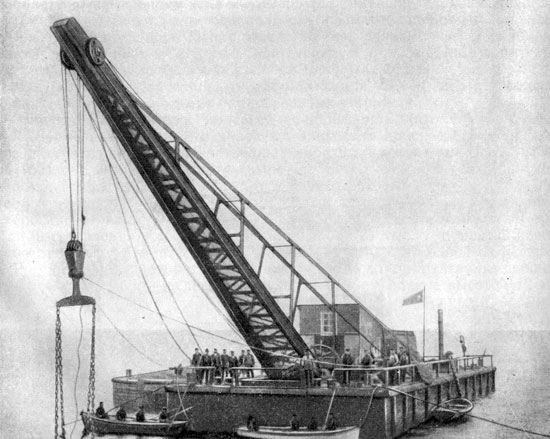 На поворотной раме смонтированы паросиловая установка, механизмы крана, а также выдвижная консоль, на которой закреплены постоянно два груза весом 6 Т; третий груз весом 4 Т, находящийся на подстреловой платформе навешивается при работе крана на дополнительных опорах. К поворотной раме крепится стрела сварной листовой конструкции с двумя грузовыми крюками.
