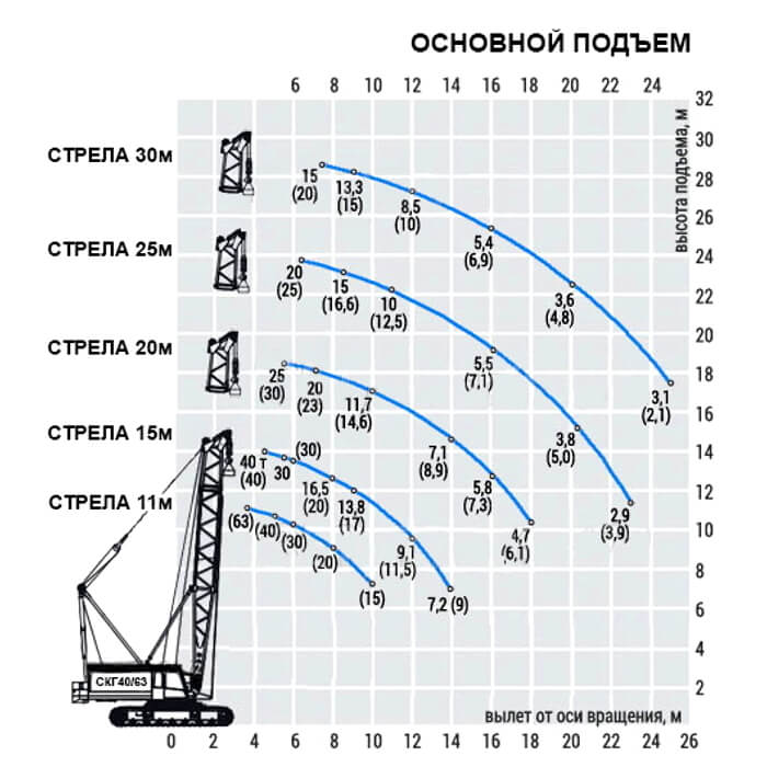 | Грузоподъемность (при базовой стреле 14 м), т: | |