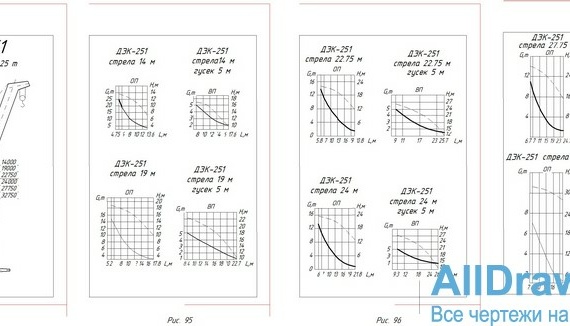 | Диаграмма грузовысотрных характеристик гусеничного крана ДЭК-251 |