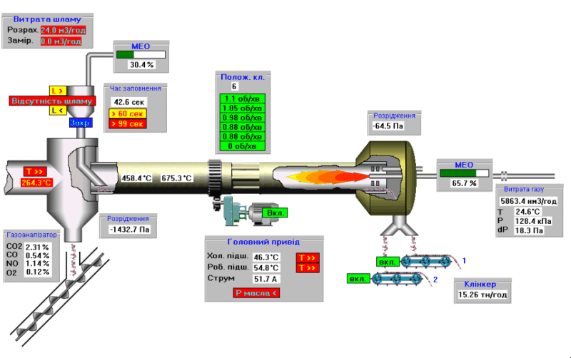 Продукты горения направляются к известняку и отдают ему свое тепло. При этом температура дымовых газов превышает соответствующее значение известняка на 200-300 °С. Проходя через всю длину барабана, сырье становится известью, которая выгружается через разгрузочную течку, размещенную в блоке горячей головки.