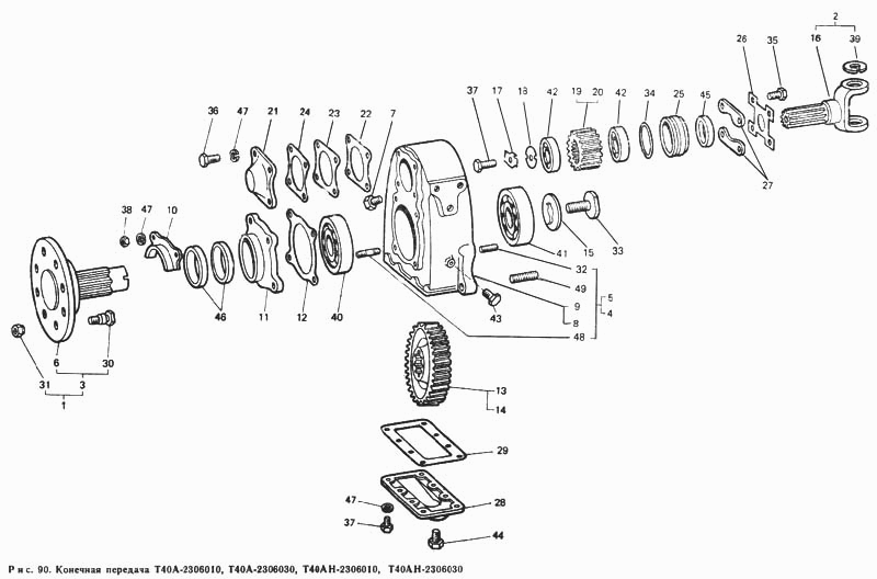 Главная передача редуктора переднего ведущего моста трактора Т-40