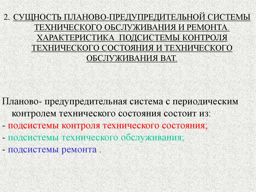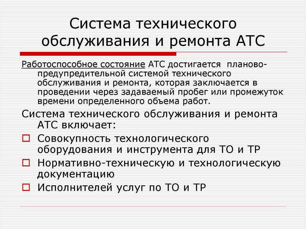 Лекция: “Планово-предупредительная система технического обслуживания, ее характеристика и особенности”