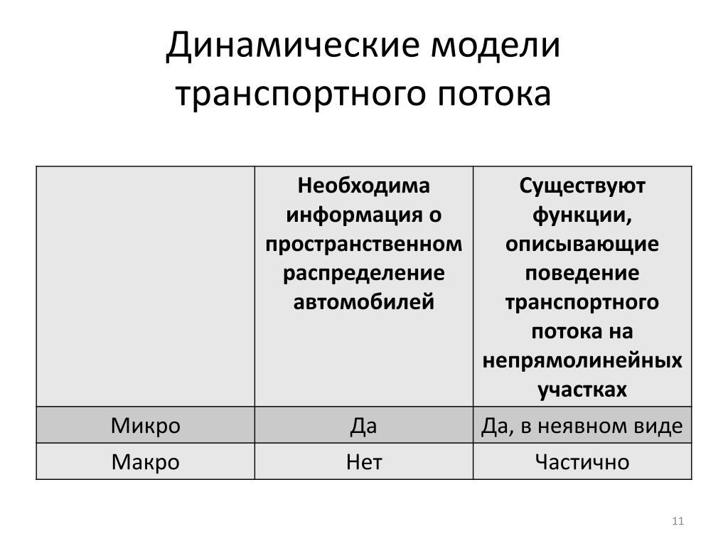 Первый предполагает исследование процессов, происходящих внутри потока, поэтому он получил название микроскопическое моделирование. Микроскопическое моделирование рассматривает транспортный поток как взаимное положение следующих друг за другом автомобилей и основано на теории следования за лидером. Предполагается, что основное влияние на изменение параметров движения конкретного автомобиля (ведомого) оказывает изменение скорости движения находящегося перед ним автомобиля-лидера.