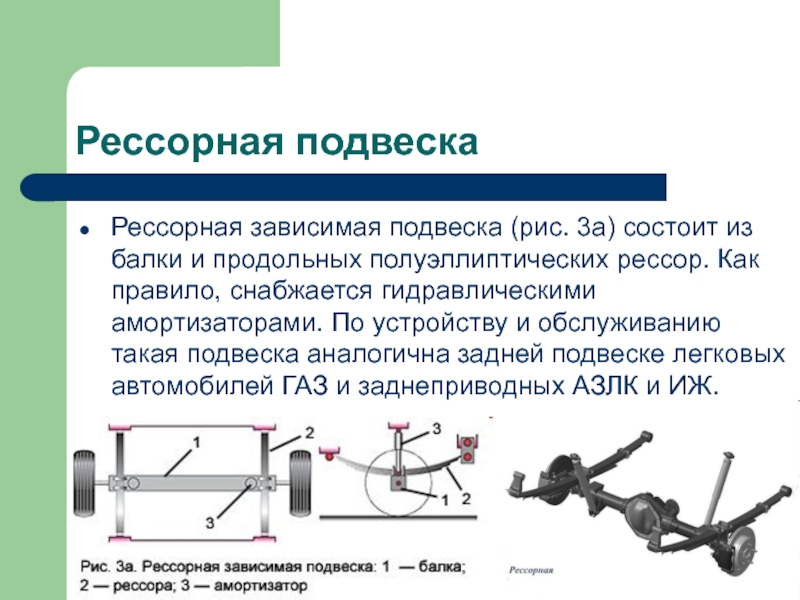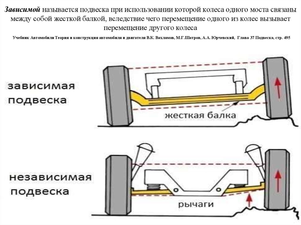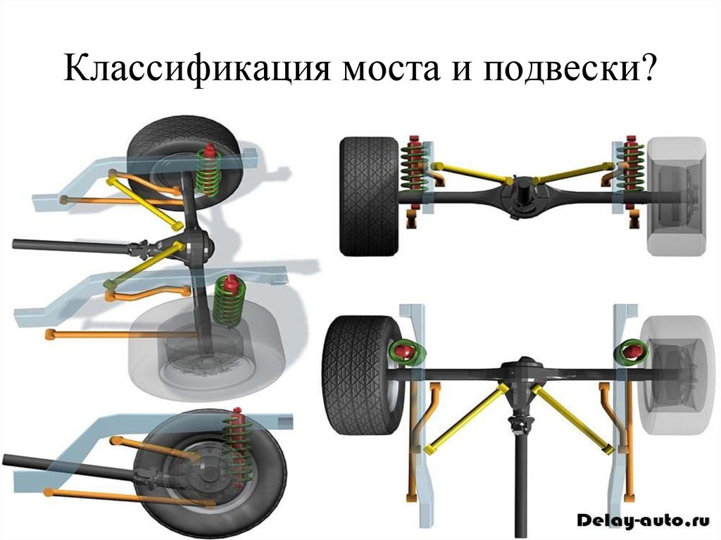 ΠΠΎΠ΄Π²Π΅ΡΠΊΠΈ Π°Π²ΡΠΎΠΌΠΎΠ±ΠΈΠ»Π΅ΠΉ ΠΌΠΎΠΆΠ½ΠΎ ΡΠ°Π·Π΄Π΅Π»ΠΈΡΡ Π½Π° Π΄Π²Π° ΡΠΈΠΏΠ°: Π½Π΅Π·Π°Π²ΠΈΡΠΈΠΌΠ°Ρ ΠΈ Π½Π΅Π·Π°Π²ΠΈΡΠΈΠΌΠ°Ρ ΠΏΠΎΠ΄Π²Π΅ΡΠΊΠ°. ΠΠΈΠΆΠ΅ ΠΏΡΠΈΠ²Π΅Π΄Π΅Π½Ρ Π΄Π΅ΡΠ°Π»ΠΈ ΠΊΠ°ΠΆΠ΄ΠΎΠΉ ΡΠΈΡΡΠ΅ΠΌΡ ΠΏΠΎΠ΄Π²Π΅ΡΠΊΠΈ.