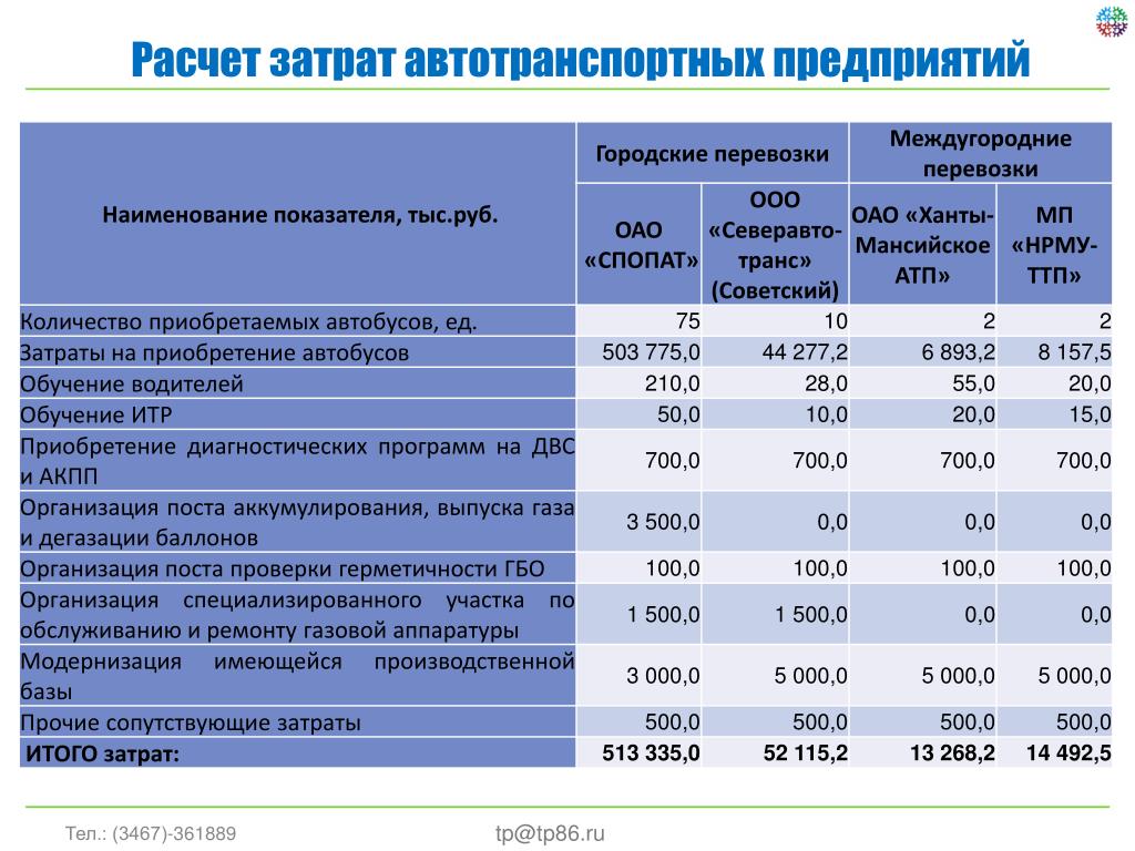 Таблица 1. Исходные данные для расчёта ТЭП работы подвижного состава ЗАО «ТК «Мегаполис»